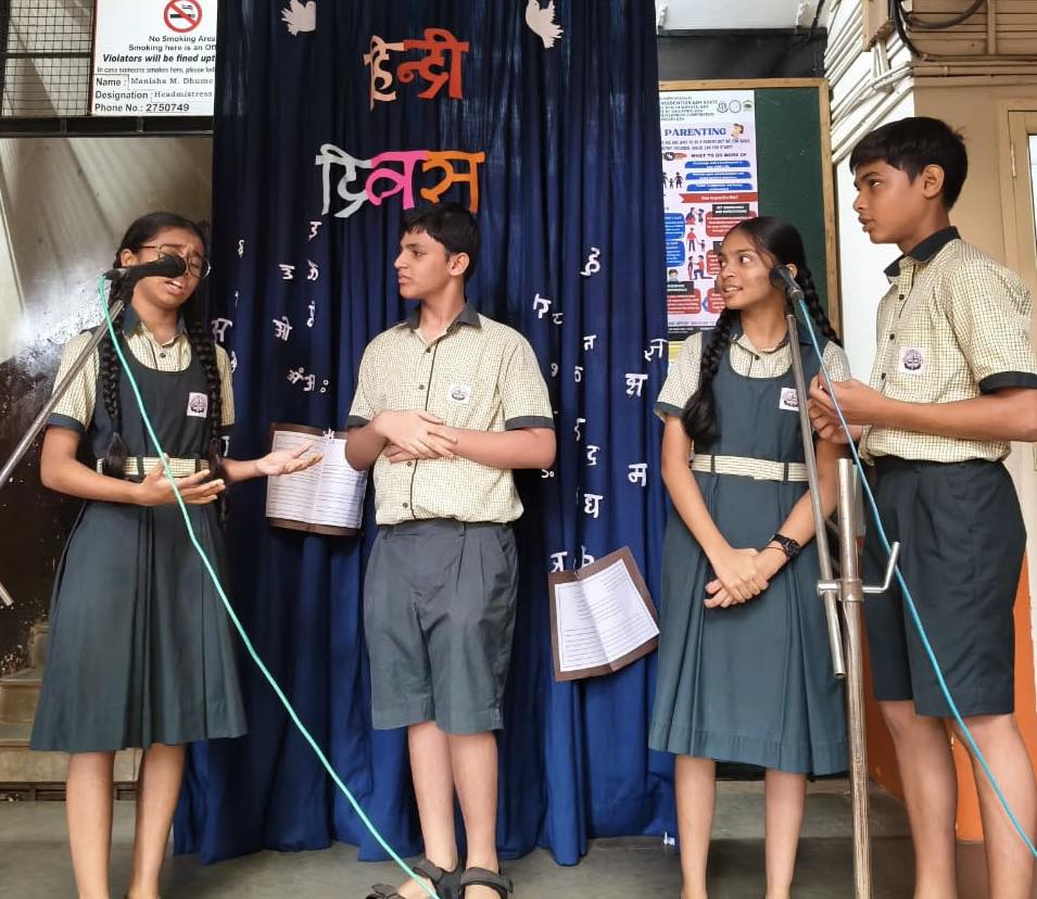 The program started with the prayer meeting. After this, explaining the importance of Hindi Day, students were given information about the historical and cultural role of Hindi language.