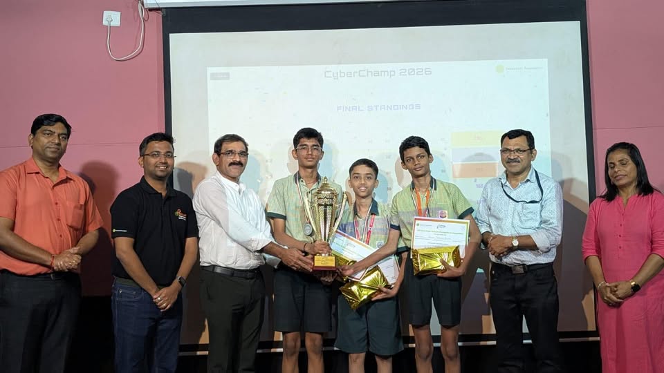 Hearty congratulations to Shraunak Suraj Naik, Aditya Ghadge and Aditya Pravin Rasal for winning the 2nd place at the 10th All Goa Inter school Quiz Competition – ‘Cyberchamp’ on 21st February 2026.