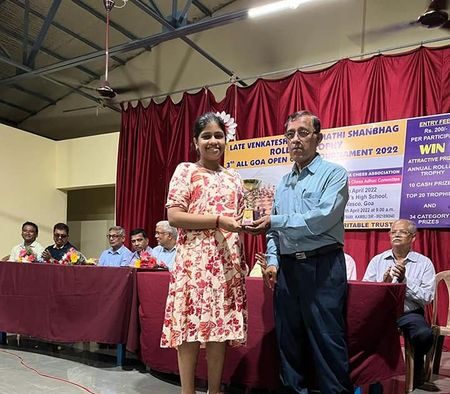 Congratulations dear Sani Gawas for winning the 2nd place in the 3rd late Venkatesh and Sumathi Shanbhag All Goa Open Chess Tournament 2022. (U 15 Girls Category)