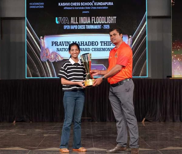 Aditi won the U17 Runners up Trophy at UVA All India Floodlight Chess Tournament, Kundapura held on 11/01/25