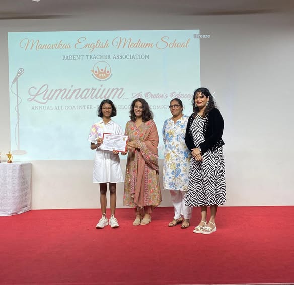 We are proud to share that our students, Miss Aashni Pai Dukle and Miss Chhavi Pai Raiturkar, participated in the English Elocution Competition organised by Manovikas High School. They received certificates of appreciation for Exceptional Speech Content. ‘Miss Aashni Pai Dukle’ received the certificate in the junior category, while ‘Miss Chhavi Pai Raiturkar’ received the certificate in the senior category. Congratulations to both of them!