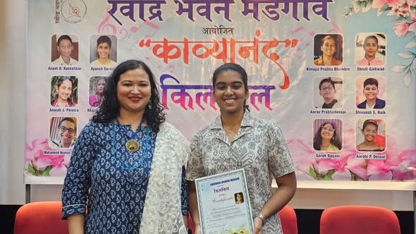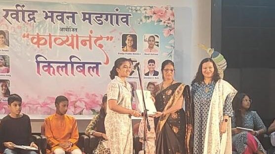 Our student, Miss Kimaya Prabhu Bhembre, participated in the poetry recitation programme, ‘Kaavyanand’ organised by Ravindra Bhavan on 28/11/25. She recited her poem “Love or Let Go” with grace and confidence, earning appreciation from the chief guest and all the dignitaries present. She was awarded a certificate of appreciation and a diary for her commendable performance.