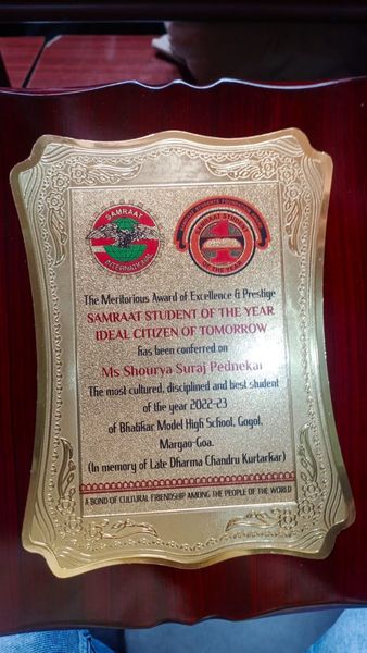 Congratulations dear Shourya Pednekar for having been selected as the Samrat Student of the year 2022-23. Your being a sincere, humane and talented student has made this possible.