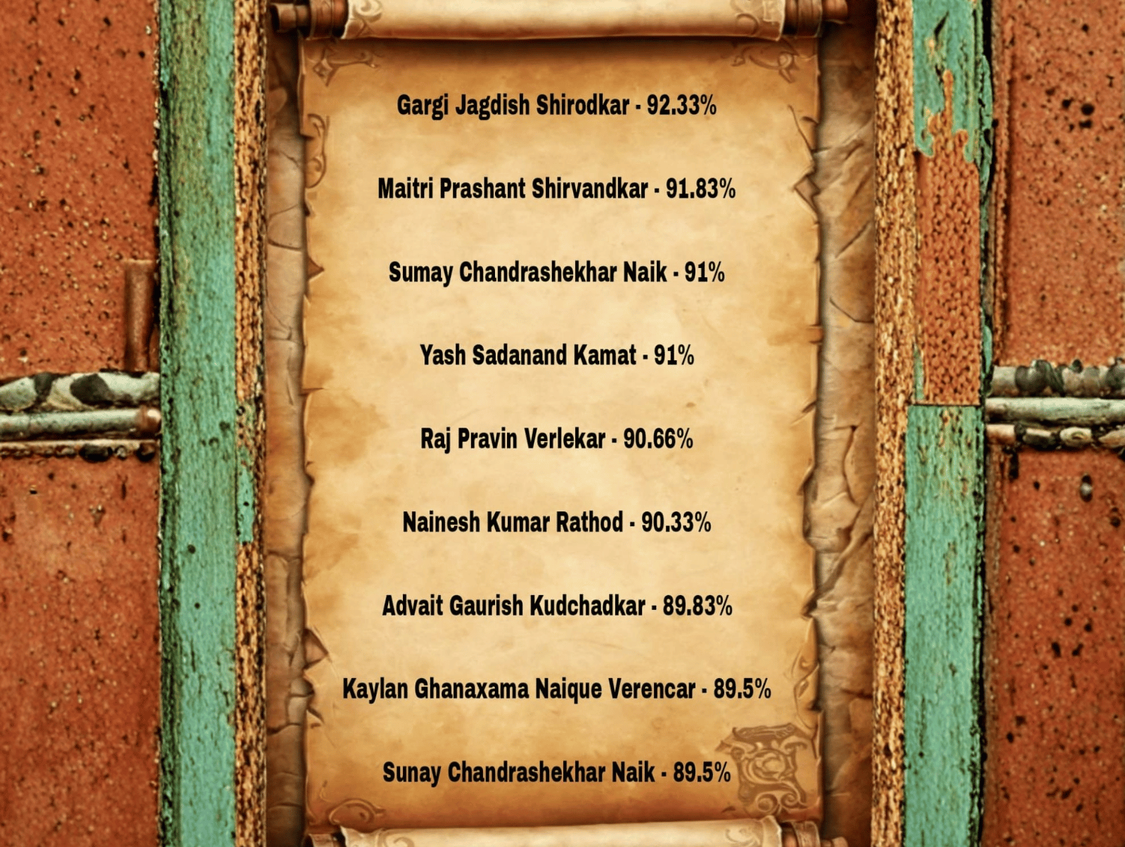 | 16 | PRAPTI PUSHPARAJ KERKAR | 528 | 600 | 88.00 | |
